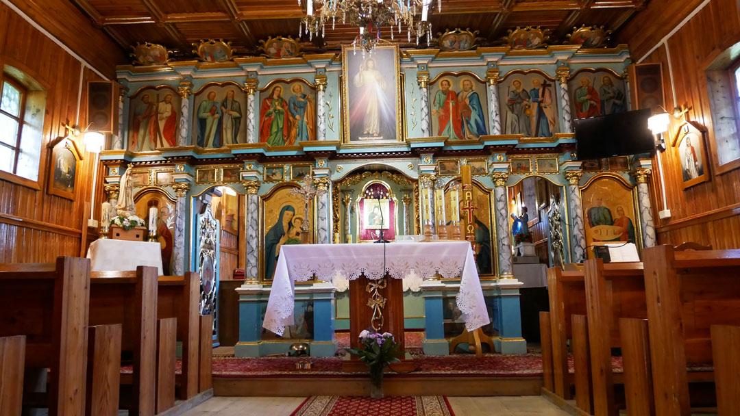 Most Orthodox, Greek Catholic, or post-Greek Catholic churches of wooden architecture were closed. As I rode my bicycle looking for the last one in my plans, I asked the children in the village, they didn’t even know such a thing existed there. Adults, a piece further away answered me: “ThereO, at the end of the road…”. And indeed, a little further there was no road. There was an elderly man sitting in front of the Orthodox church, waiting for his wife to give the keys to clean the place. But she was late. So we chatted a bit. I told him what I had seen at the Museum in Sanok (Limousine 14) and what an impression it had made on me. He, looking me in the eye, replied “You’re probably older than me”. So…, looking at each other for a while, we fell silent. Later he told me that everything is slowly dying, people don’t want to move from their homes, among other things because of the elimination of local transportation. Not everyone can afford a car. The mundane is completely ungone. The wife finally came and I had the opportunity to finally go inside one of the most beautiful Orthodox churches I’ve seen in ‘matchstick’ wooden fading architecture.