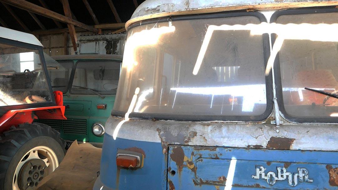 Sebastian, from the Czmoń beekeeping family, also enjoys camper puzzles and has 5.5 different versions of the GDR Robur. One is almost finished. Insisted on restoring the original mill as well. Upwind, as always, in the village. Jolka sews bee uniforms and does the bookkeeping. They have three children. Self-sufficient farm + agrotourism + open-air museum. Used to have a whole yard of Polish motorcycles. History of Robur